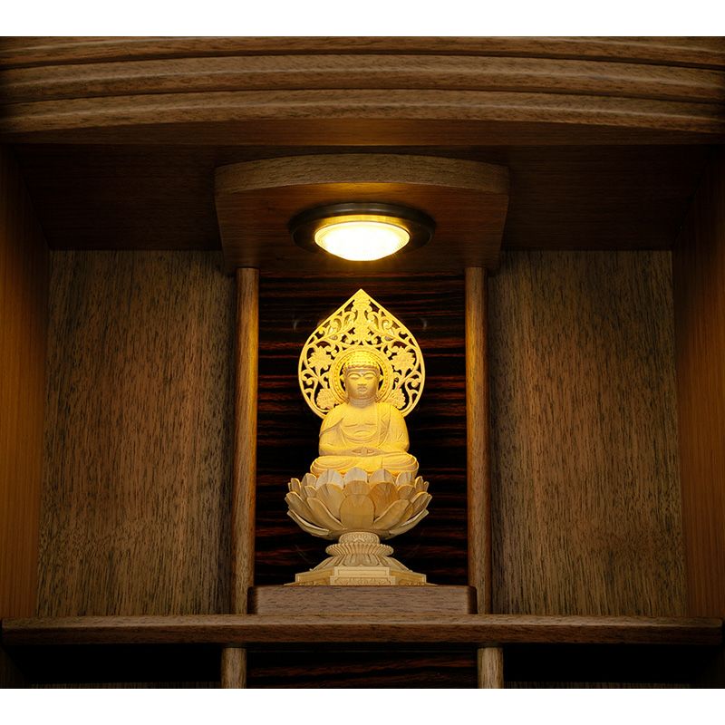 仏壇内部を照らすダウンライトは、暖色のLEDライトでご用意しました。