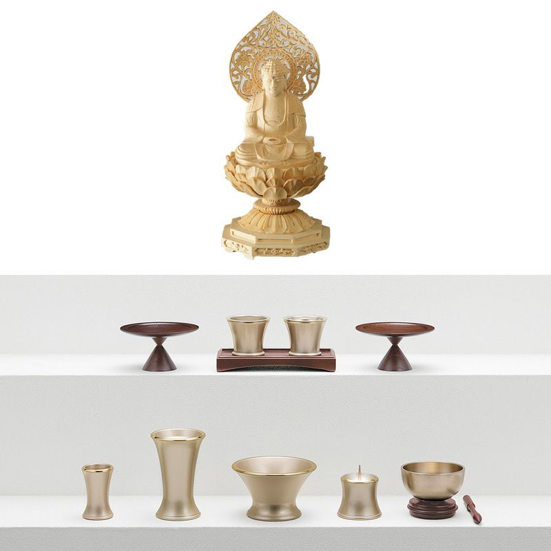 お仏壇の色味や形に合わせてセレクションした、御本尊・具足各種・おリンをセットにしました。