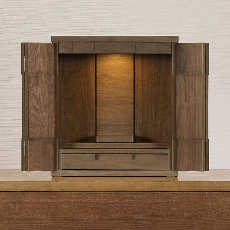 仏壇内部を照らすダウンライトは、暖色のLEDライトでご用意しました。