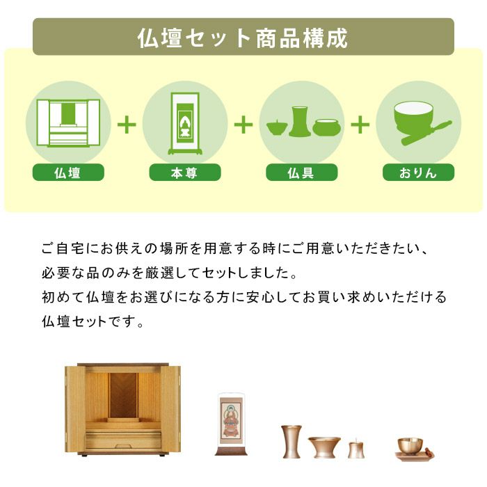 初めて仏壇をお買い求めになる方に自信をもっておすすめできる仏壇セットです。