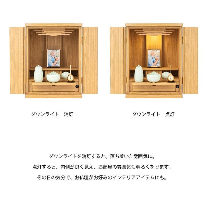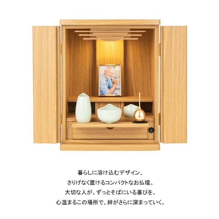 コンパクトサイズながらもお仏壇に必要な機能はすべて備わっており、しっかりとお祀り頂けます。