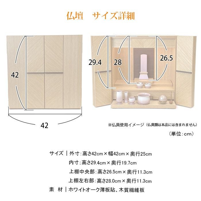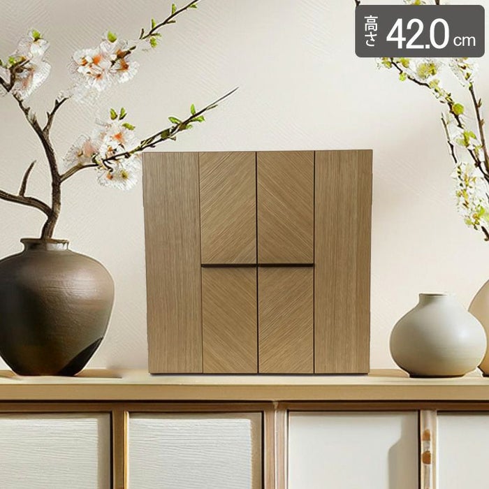 明るいホワイトオーク材の薄板を貼って仕上げた、戸棚の上に置けるサイズの、まるで家具のようなお仏壇です。