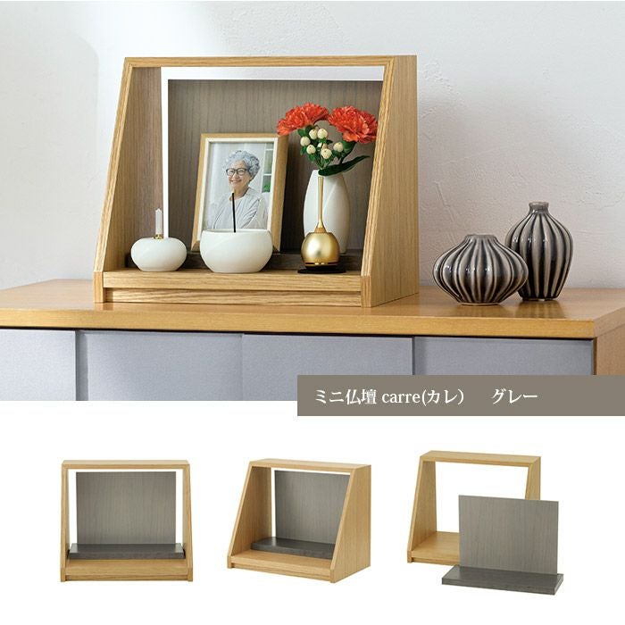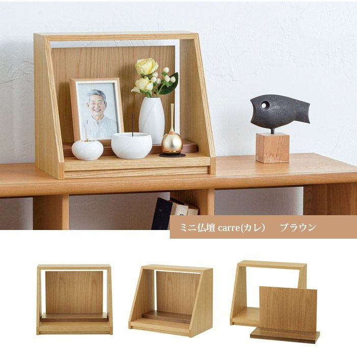 ミニ仏壇「carre(カレ)」は、ご家族や大切な方、故人その人をお手元で偲ぶための小さなお仏壇です。