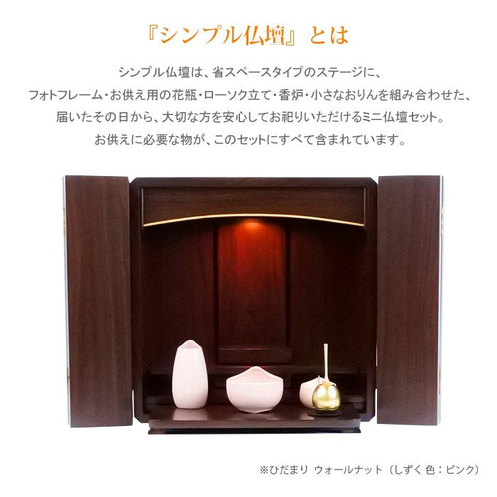 他の画像を見る シンプル仏壇 ポント ダーク色 ミニ仏壇セット W38cm 4色から選べる仏具も はじめての供養に コンパクト おしゃれ 手元供養にも 送料無料 税込価格 ¥ 99,800 税込 カートに入れる お気に入りに登録する