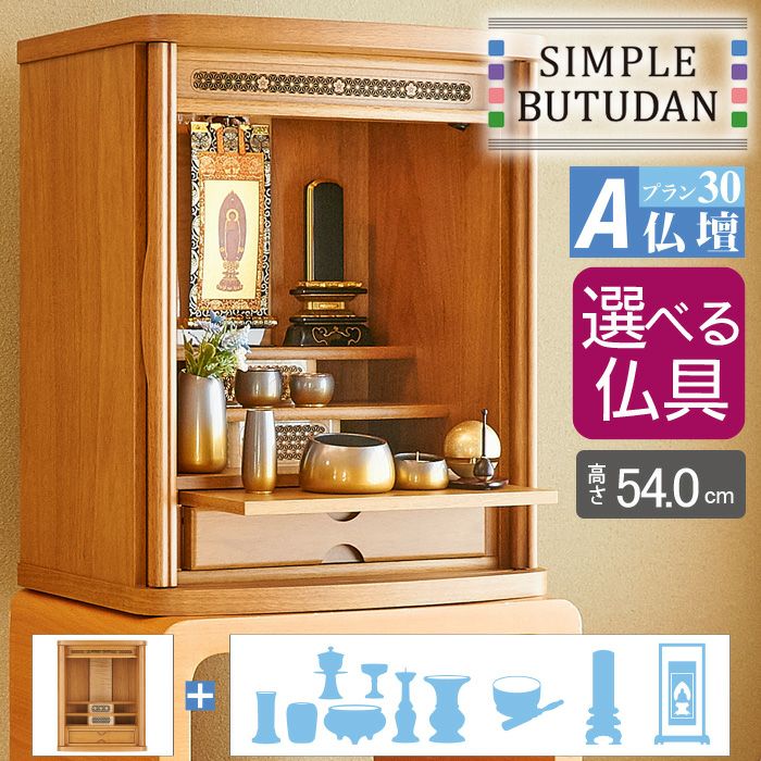 ・シンプル仏壇で提供する「仏具セット」「おりんセット」「位牌」「掛軸」それぞれ不要の方は、ご注文時に「不要」のメニューを選択してください。尚、不要を選ばれた場合(1つのみ、あるいは複数)でも、ご提供価格に変更はございません。