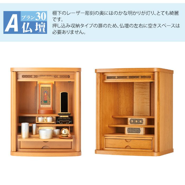 押し込み収納タイプの扉のため、仏壇の左右に空きスペースは必要ありません。