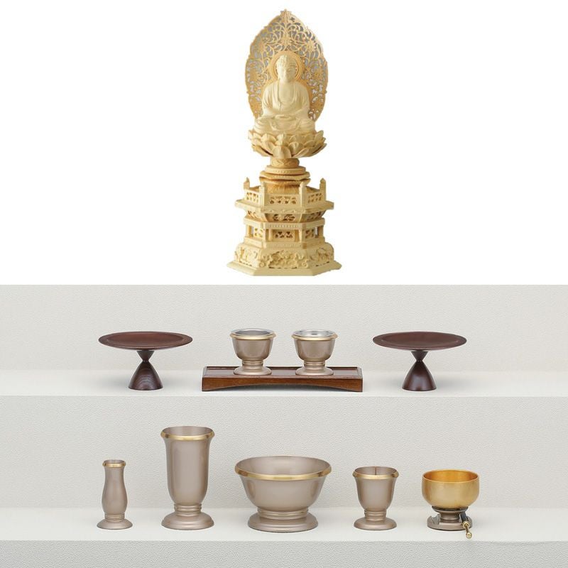 お仏壇の色味や形に合わせてセレクションした、御本尊・具足各種・おリンをセットにしました。