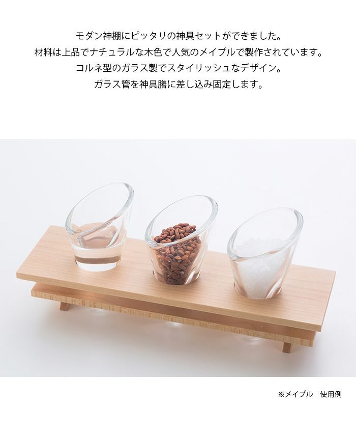 コルネ型のガラス製でスタイリッシュなデザイン。ガラス管を神具膳に差し込み固定します。
