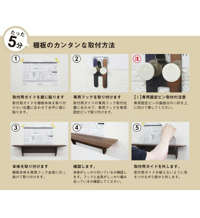 この神棚板は取付専用の台紙、石膏ボードピンを使用することにより、簡単に安全に短時間で取り付け可能です。