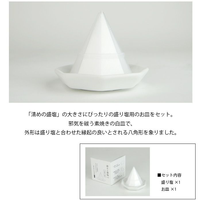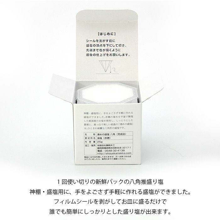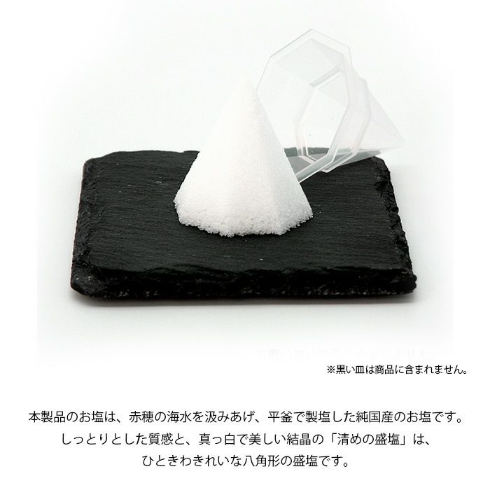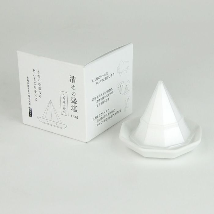 しっとりとした質感と、真っ白で美しい結晶の「清めの盛塩」は、ひときわきれいな八角形の盛塩です。