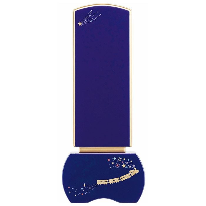 宮沢賢治の代表作「銀河鉄道の夜」をモチーフに、銀河を旅する汽笛を吹く黒色の機関車を表現した装飾を、お位牌に施しました。