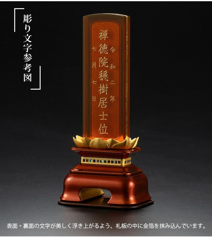 「位牌 陽樹」は、自然の恵みから生まれた宝石であり「永遠の象徴」ともされる琥珀を贅沢に使いました。