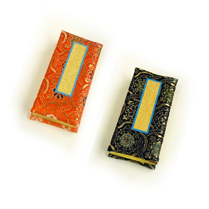 過去帳には亡くなられた方の法名・亡くなった年月日を記します。 金襴鳥の子- 朱と紺の2色あり。