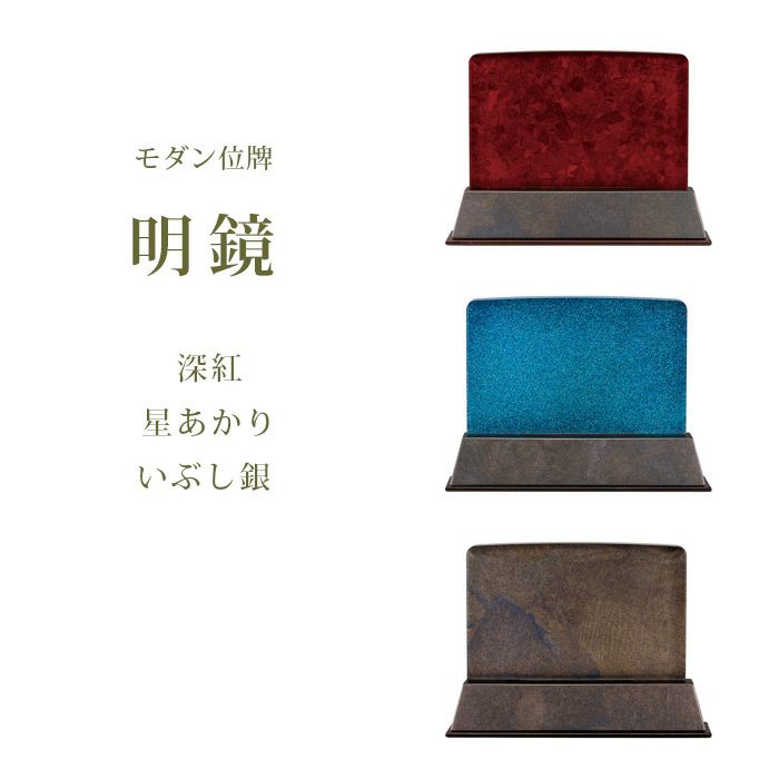 他の画像を見る 【モダン位牌】モダン位牌 『明鏡』 深紅・星あかり・いぶし銀 横置き 5色から選べるモダンなお位牌 高さ8.2cm 幅11.6cm 送料無料 税込価格 ¥ 75,460 税込 詳細を見る お気に入りに登録する
