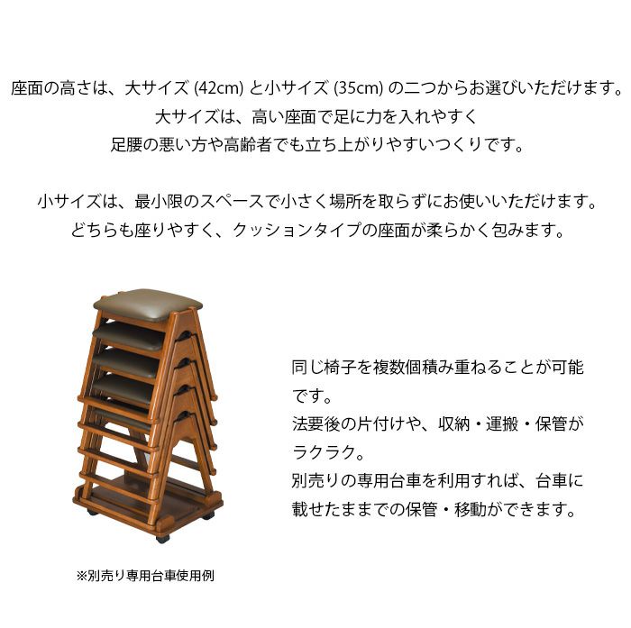座面の高さは、大サイズ(42cm)と小サイズ(35cm)の二つからお選びいただけます。
