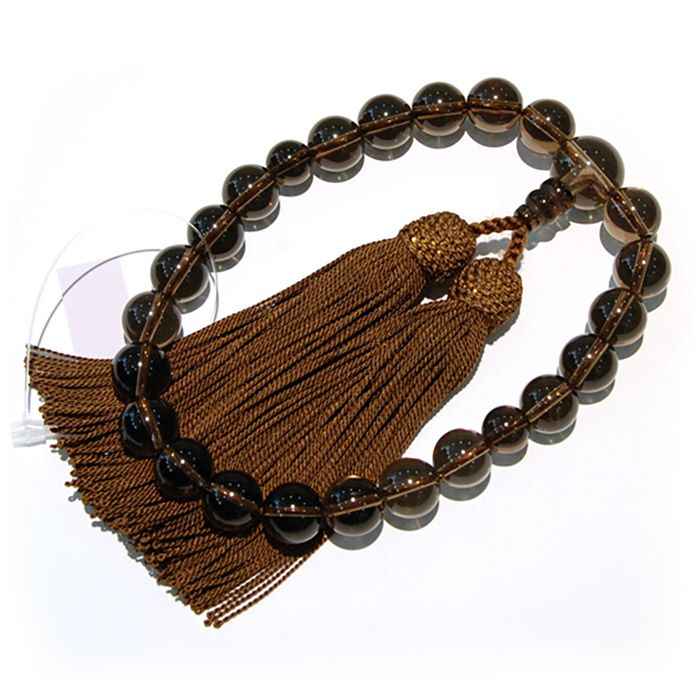 【念珠(男性用)】片手 茶水晶 22玉 親玉は共仕立(茶水晶) (房は正絹・頭付房 色は焦茶) 細桐箱入り
