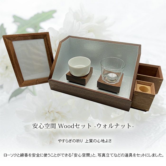 他の画像を見る 手元供養セット【安心空間】Woodセット ウォールナット ローソクと線香を安全に安心してお使いいただけるステージタイプのセット 送料無料 税込価格 ¥ 82,500 税込 詳細を見る お気に入りに登録する