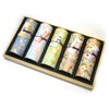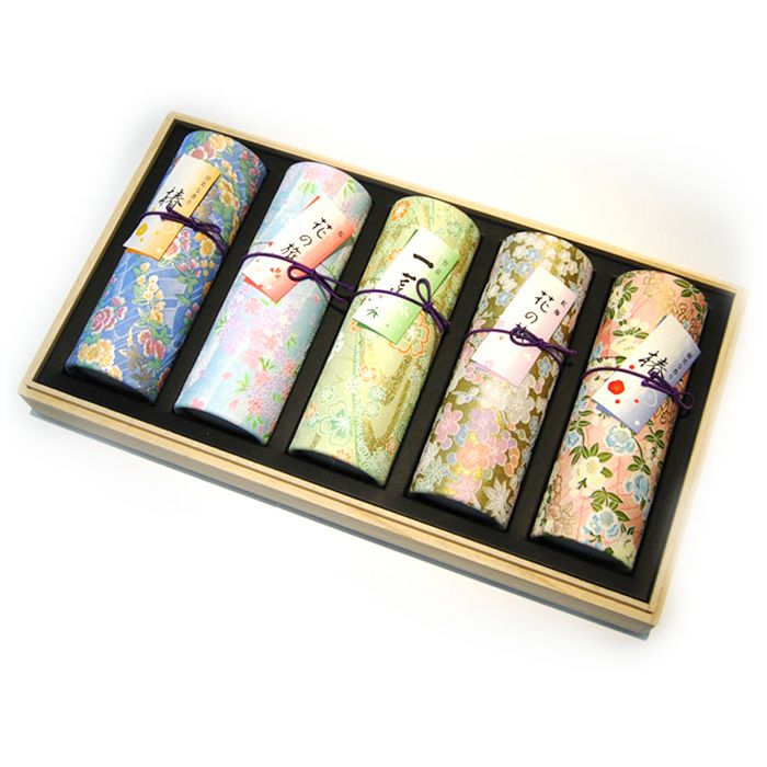 人気の高い花の旅から、「桜」と「紅梅」、ほのかな淡い香りの「一葉」、利休椿から「甘美な香り」「優美な香り」を円筒型容器に詰めて進物用のお線香としてご紹介致します。