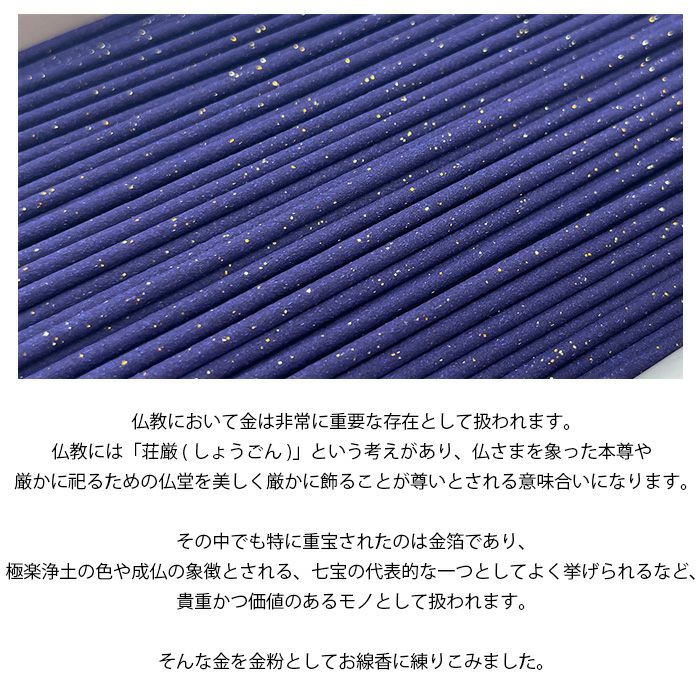 皆々様の正しいお願い事を金粉入りお線香にたくして御仏にお供えください。