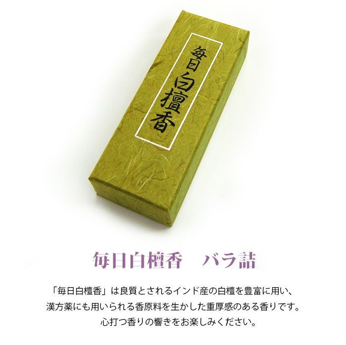 「毎日白檀香」は良質とされるインド産の白檀を豊富に用い、漢方薬にも用いられる香原料を生かした重厚感のある香りです。