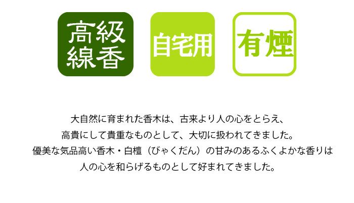 優美な気品高い香木・白檀(びゃくだん)の甘みのあるふくよかな香りは人の心を和らげるものとして好まれてきました。