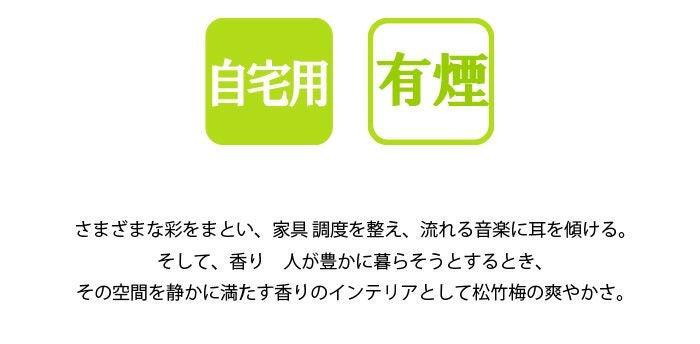 そして、香り人が豊かに暮らそうとするとき、その空間を静かに満たす香りのインテリアとして松竹梅の爽やかさ。