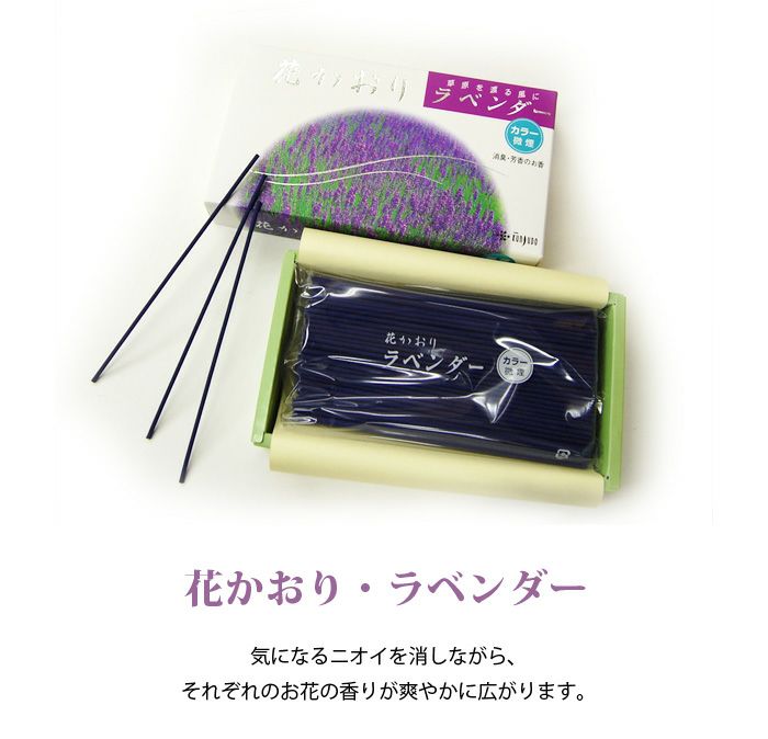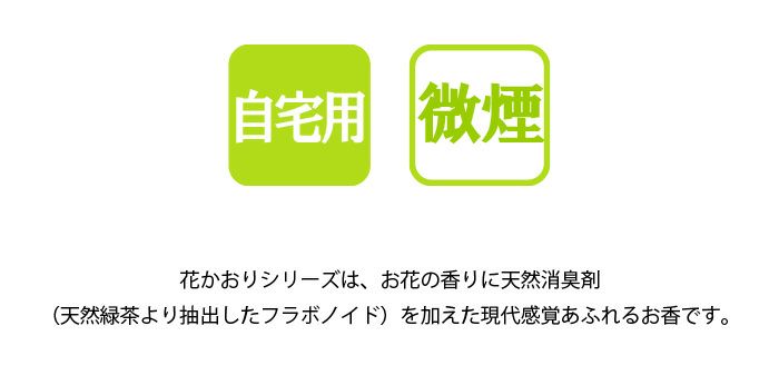 この花かおりシリーズは、お花の香りに天然消臭剤(天然緑茶より抽出したフラボノイド)を加えた現代感覚あふれるお香です。