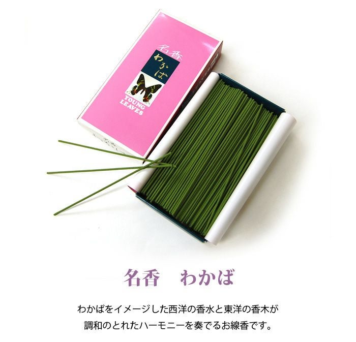 わかばをイメージした西洋の香水と東洋の香木が調和のとれたハーモニーを奏でるお線香です。