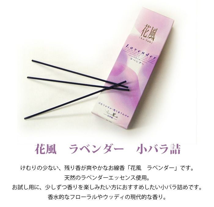 けむりの少ない、残り香が爽やかなお線香「花風ラベンダー」です。天然のラベンダーエッセンス使用。