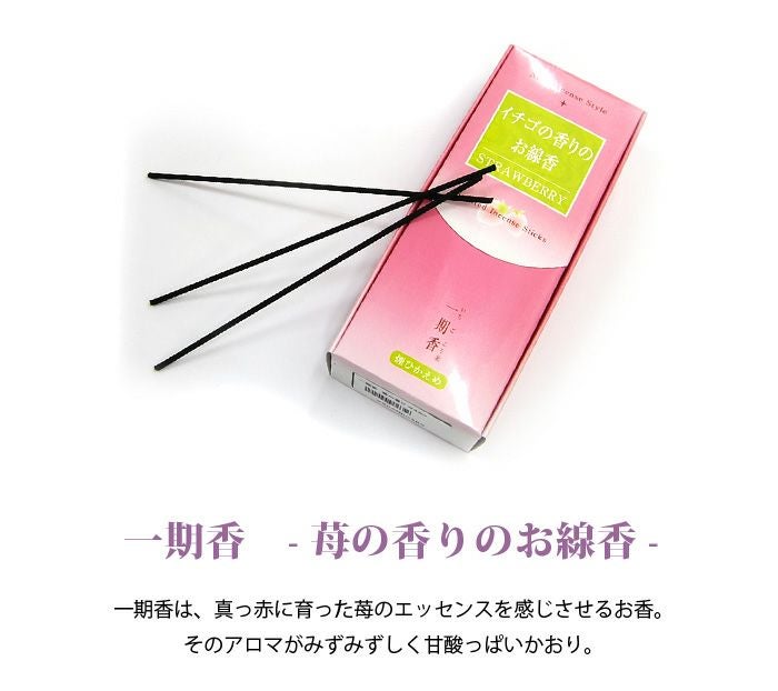 一期香は、真っ赤に育った苺のエッセンスを感じさせるお香。そのアロマがみずみずしく甘酸っぱいかおり。