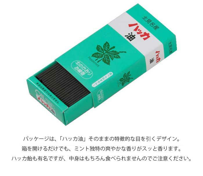 パッケージは、「ハッカ油」そのままの特徴的な目を引くデザイン。