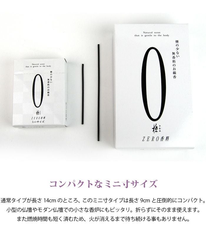 享保元年創業の老舗「奥野晴明堂」が作り上げた極微煙・無香料のベストセラー線香「極 ZERO」に、小型の仏壇などの現代の生活様式に合わせたミニサイズが加わりました。