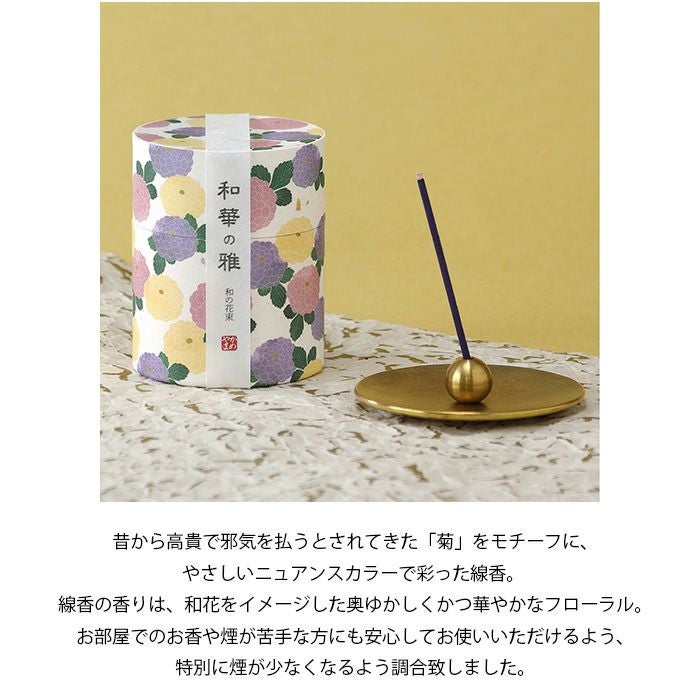 昔から高貴で邪気を払うとされてきた「菊」をモチーフに、やさしいニュアンスカラーで彩った線香。