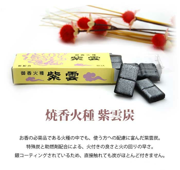 お香の必需品である火種の中でも、使う方への配慮に富んだ紫雲炭。