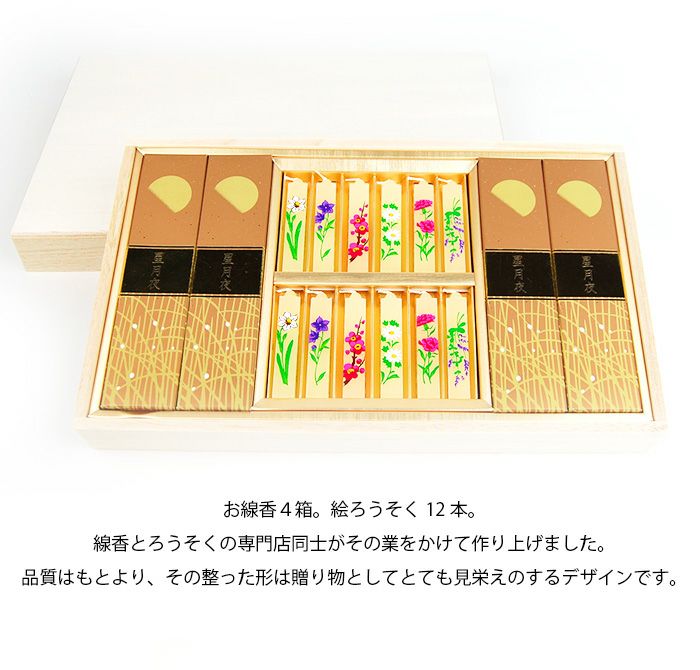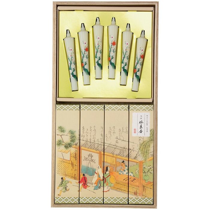 【微煙】進物 吟撰仙年香 絵ろうそくセット 桐箱入り