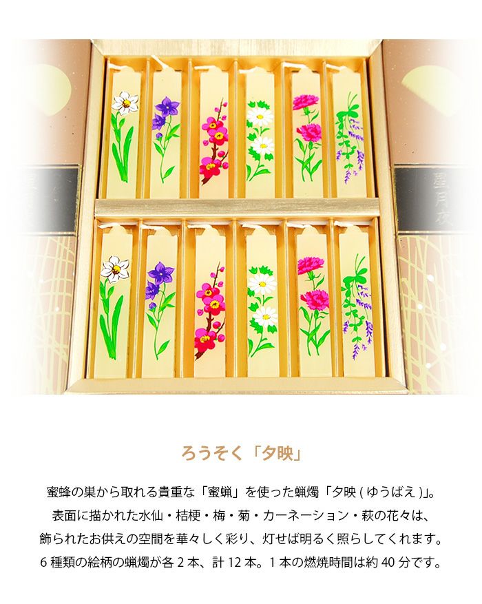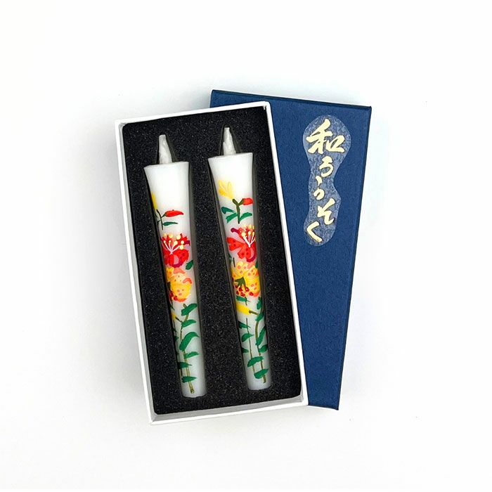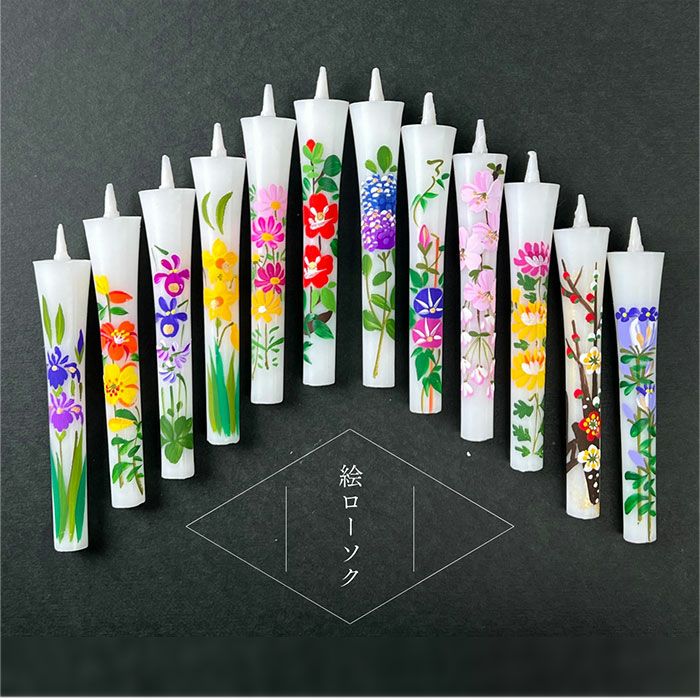 絵ローソク(手描き) 2本入 12か月の花と南天・福寿草の絵柄から選べる【メモリアルアートの大野屋】