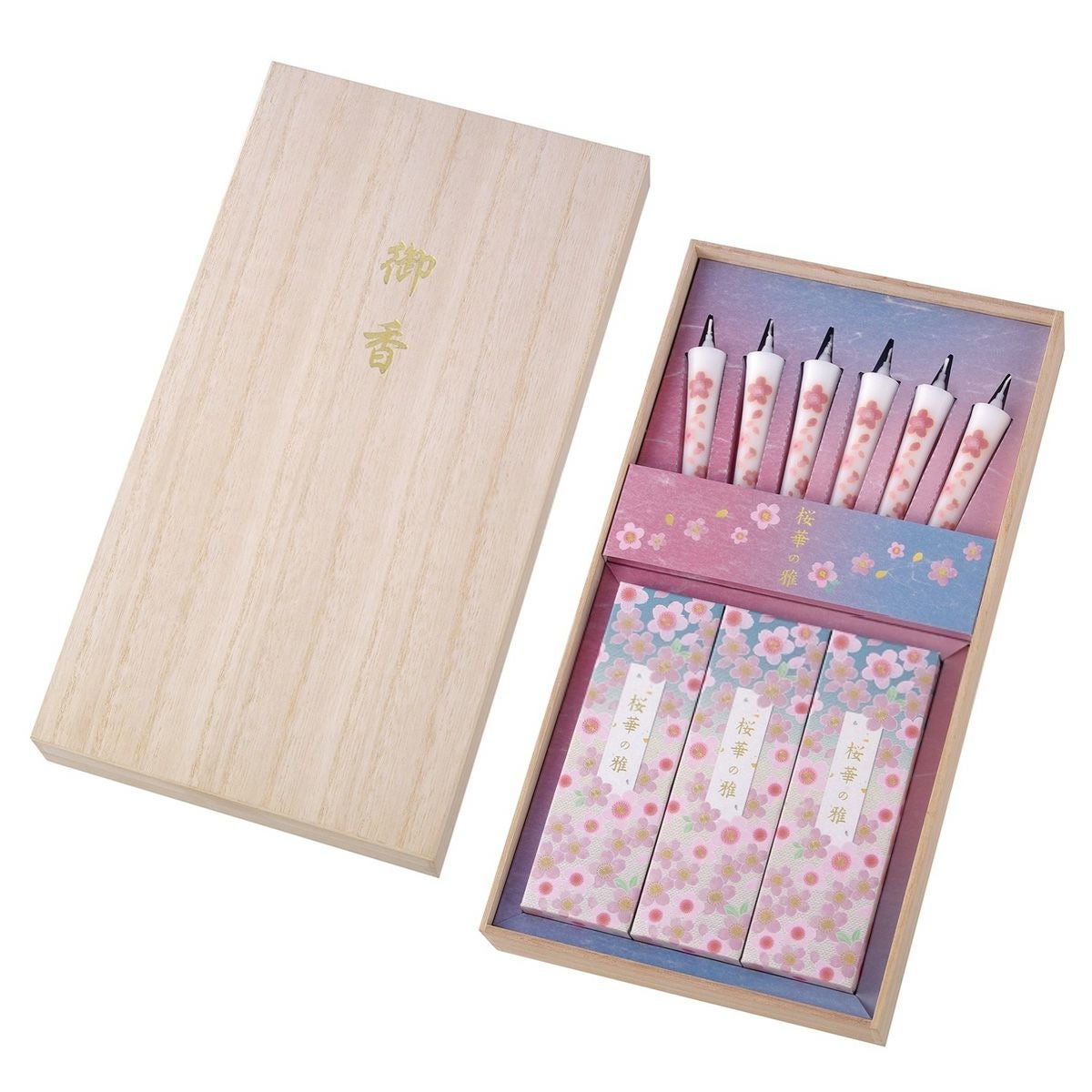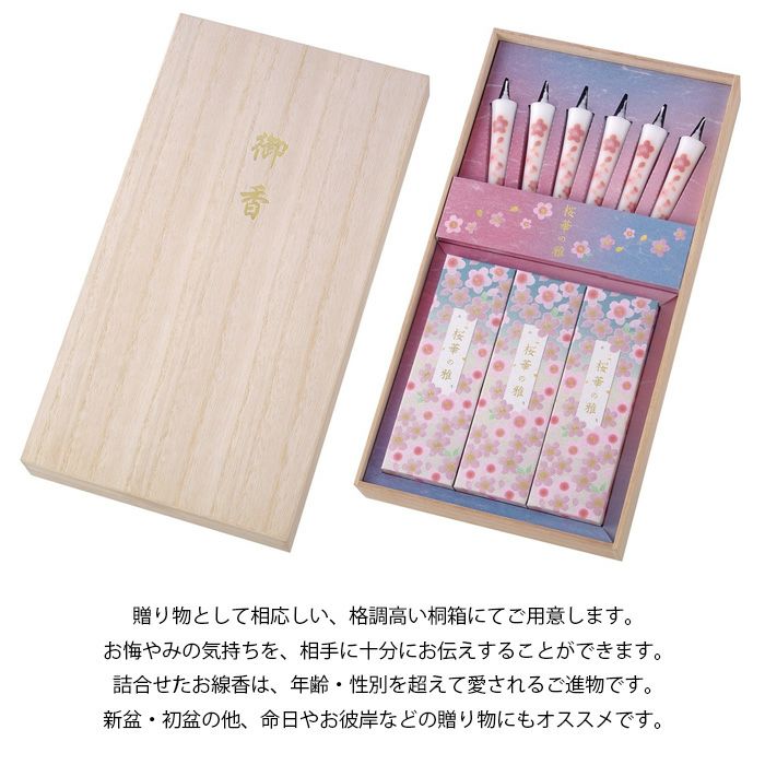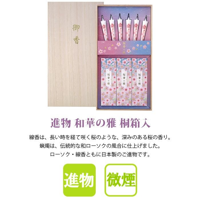 【微煙】進物線香 桜華の雅 線香・絵ローソクセット 桐箱入