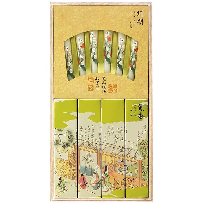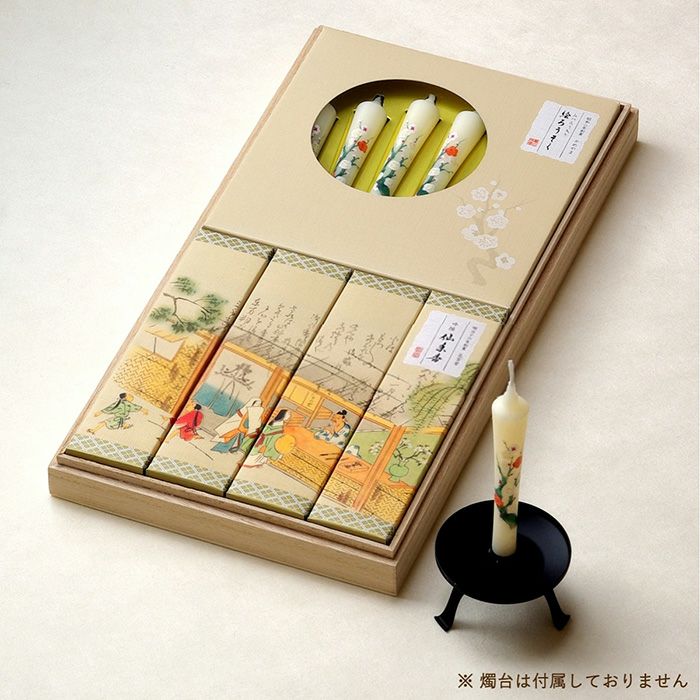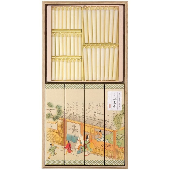 【微煙】進物 特撰絵巻 吟撰仙年香 蜜蝋絵ろうそく 桐箱入り
