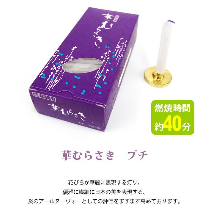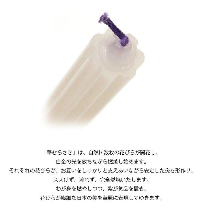 「華むらさき」は、自然に数枚の花びらが開花し、白金の光を放ちながら燃焼し始めます。