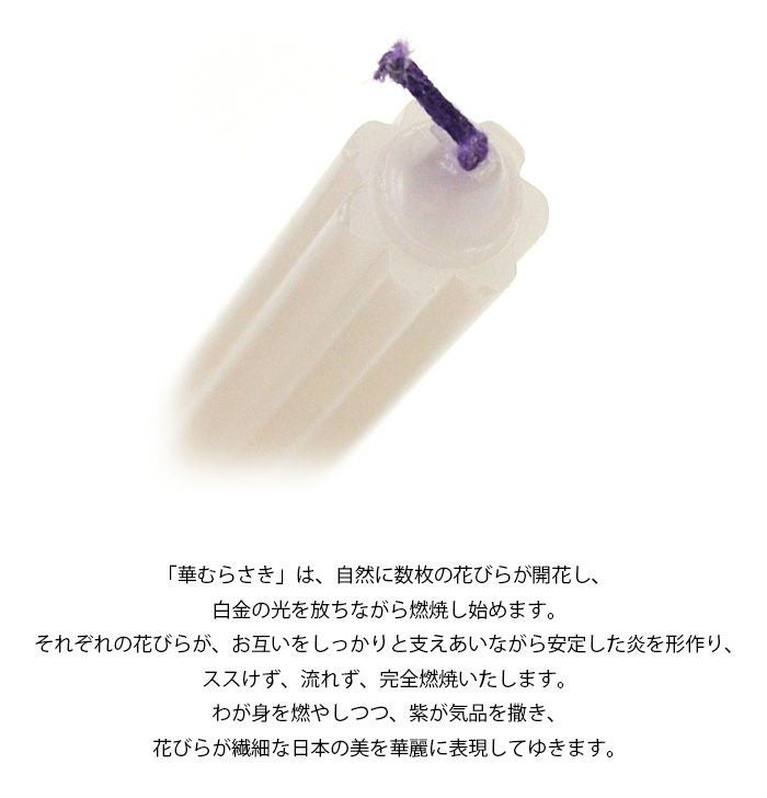 「華むらさき」は、自然に数枚の花びらが開花し、白金の光を放ちながら燃焼し始めます。