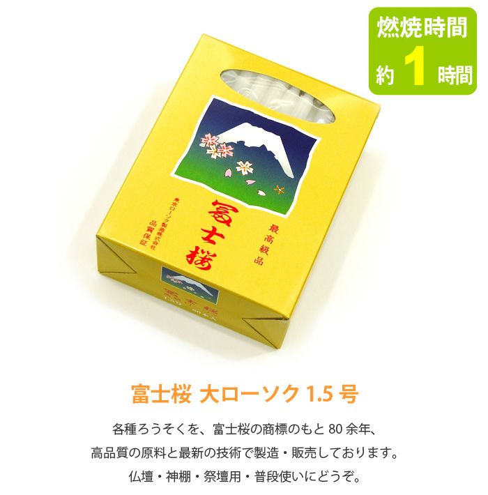 富士桜 大ローソク 1.5号 (燃焼時間約1時間・80本入り)