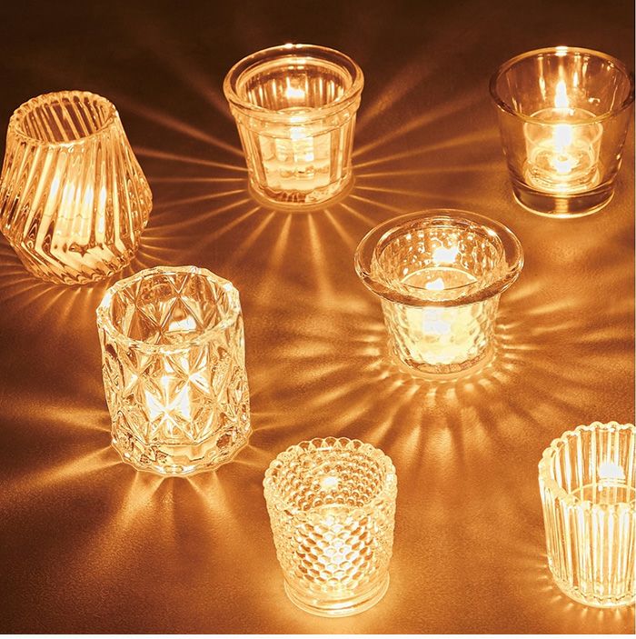 ガラスの容器や、お好みのキャンドルポットやキャンドルホルダー、ティーキャンドル用の火立などに入れてお使いください。