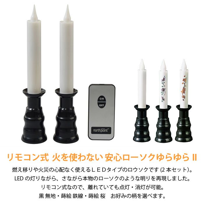 他の画像を見る 【LEDローソク】リモコン式火を使わない 安心ローソクゆらゆらII 1対(2本セット)ミニ 絵柄が選べます 税込価格 ¥ 4,675 税込 〜 税込価格 ¥ 税込 詳細を見る お気に入りに登録する