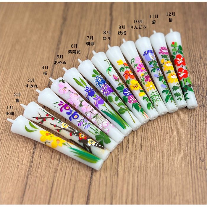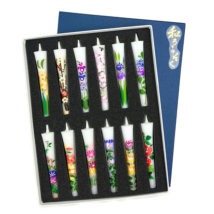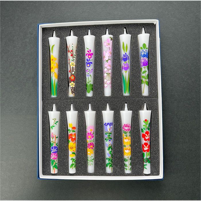 【ろうそく】 絵ローソク(手描き) 四季の花 12本入り