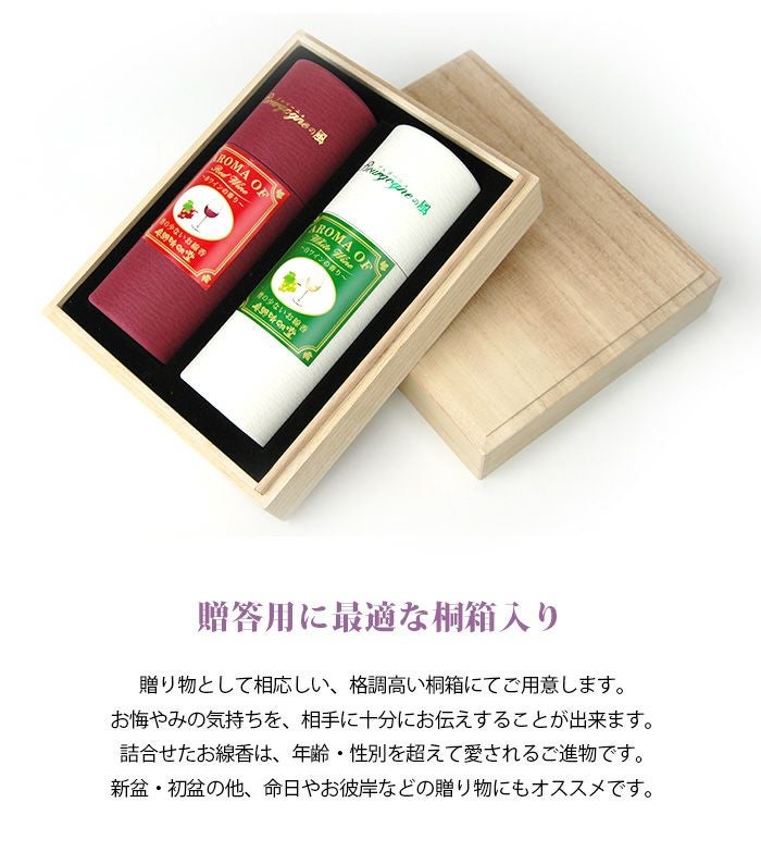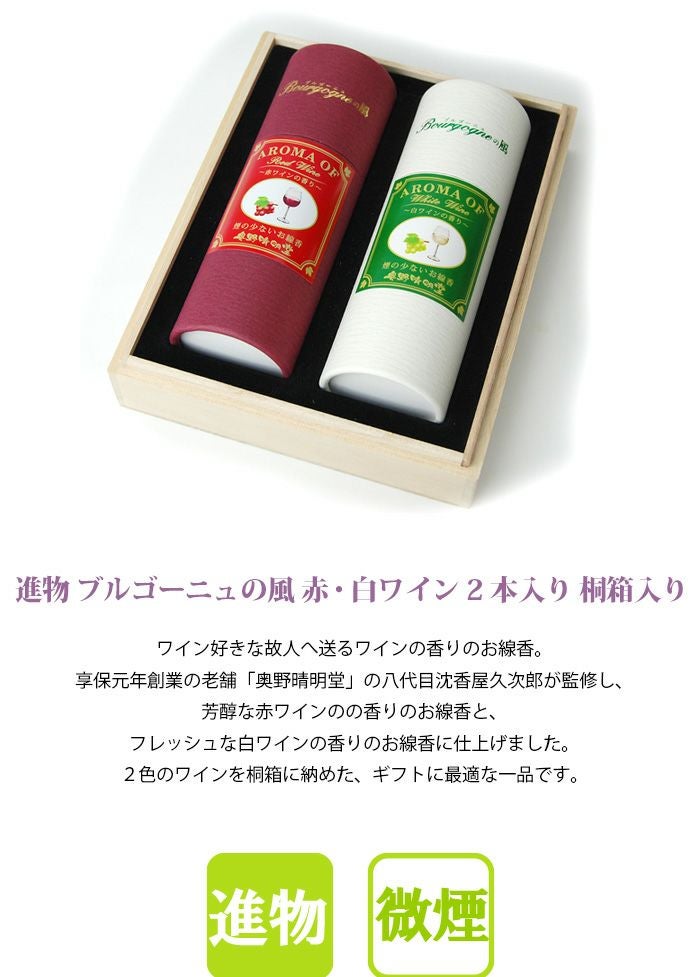 【微煙】線香 進物 ブルゴーニュの風 赤・白ワイン2本入り 桐箱入り