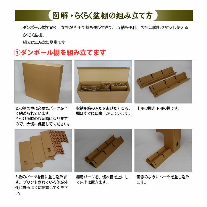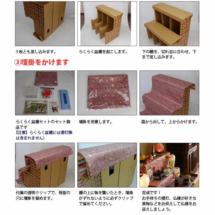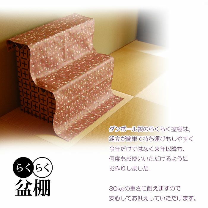 他の画像を見る 【ネットショップ限定価格!】らくらくお盆セット ダンボール製の盆棚はじめ全部で7点のお盆商品をセットにしました! 送料無料 税込価格 ¥ 29,700 税込 在庫切れ 詳細を見る お気に入りに登録する