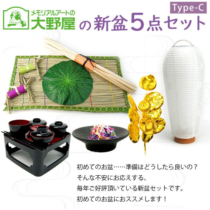 他の画像を見る 【ネットショップ限定価格!】新盆セット 5点基本セット[お盆 初盆 新盆 お盆ちょうちん 盆提灯 新盆セット 初盆セット お盆飾り]【メモリアルアートの大野屋】 送料無料 税込価格 ¥ 9,500 税込 詳細を見る お気に入りに登録する