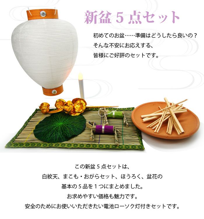 新盆についての知識が何も無かったので、必要なものがセットで購入でき大変助かりました。