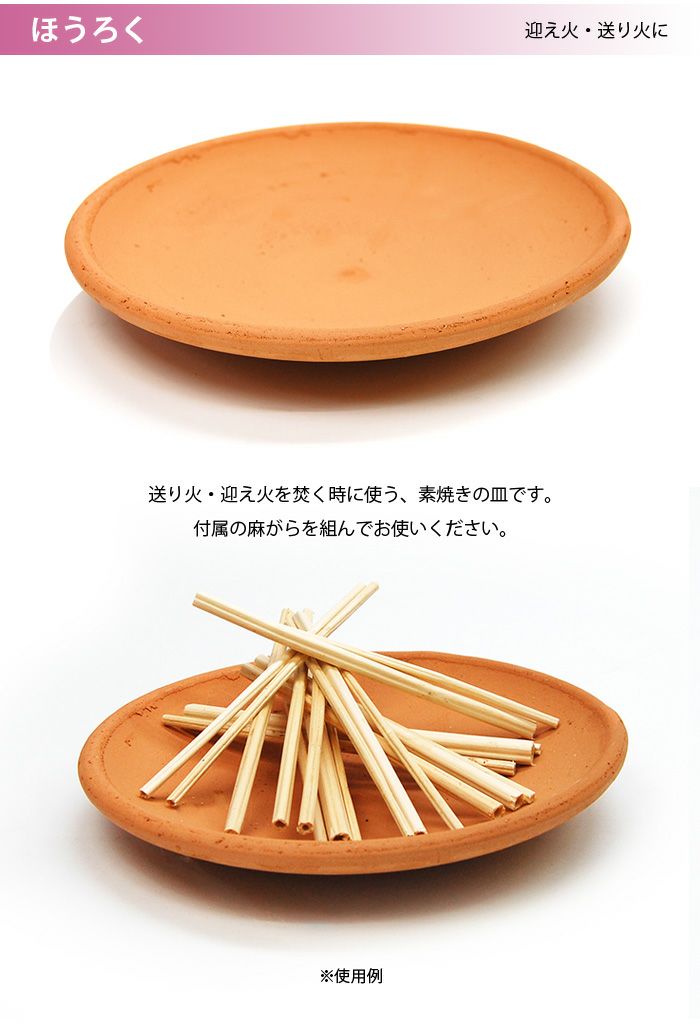 迎え火・送り火を焚く時にお使い頂く素焼きのほうろく皿です。