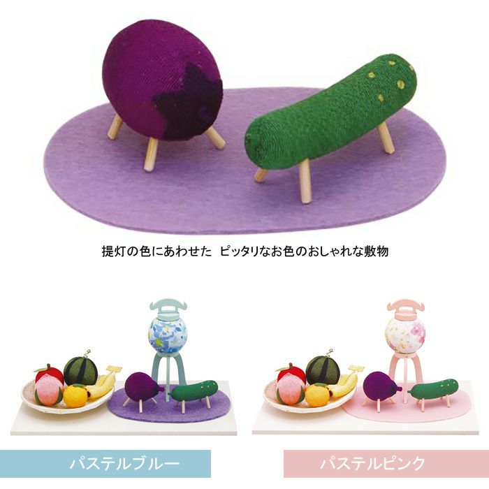 盆提灯と精霊馬。お盆のお迎えに欠かせないお飾りが、可愛らしいサイズでセットになりました!